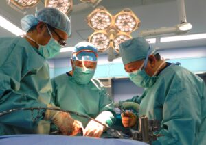 傷が小さく、術後回復も早いということで、近年腹腔鏡手術は一般病院にも普及してきています。安全面での懸念を取りざたされることもありますが、大腸癌領域に関しては全国で2015年に施行された大腸癌症例に占める腹腔鏡下手術の比率は72%と報告されています。(内視鏡外科手術に関するアンケート調査 -第13回集計結果報告- 日本内視鏡外科学会雑誌2016年11月21巻6号より)