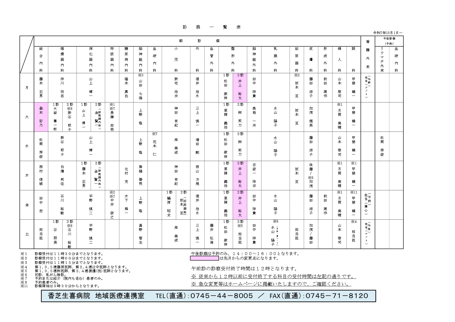 以下 診察一覧表をクリックもしくはPDFをご覧ください