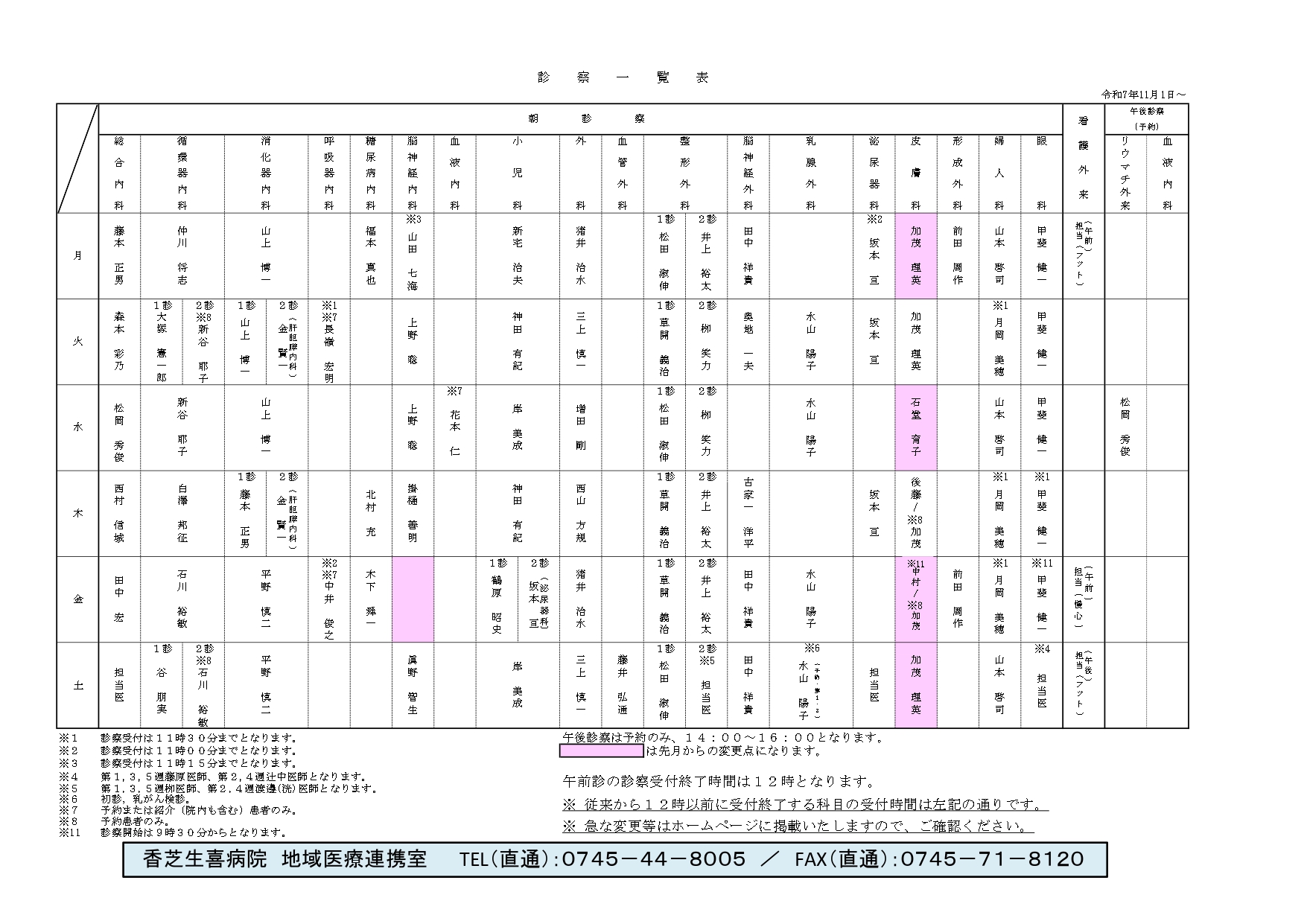診察担当医は変更になることがございます。担当医変更のお知らせはコチラ