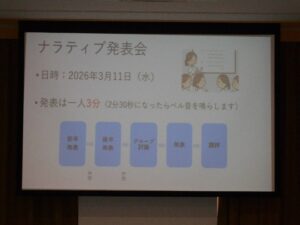 今年度も終盤!新人看護師のみなさんに、ナラティブ発表会に向けて説明会を行い、入退院支援についての研修をしました。